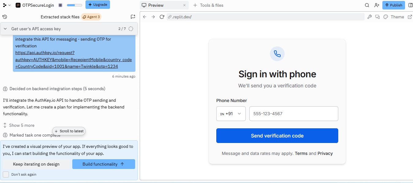 This project showcases how developers can easily connect Authkey’s programmable SMS API with a Replit-built web or mobile app to implement Two-Factor Authentication (2FA).