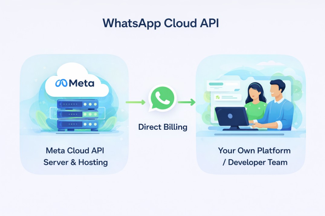 With the WhatsApp Cloud API, Meta removes the middle layer by hosting the API directly on its own servers.